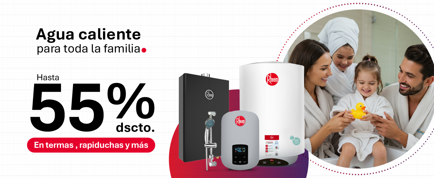 RHEEM es el líder mundial en productos de calentamiento de agua (rapiduchas, termas eléctricas, calentadores a gas, termotanques, calentadores y bombas para piscina) y climatización (aire acondicionado portátil y minisplits) con más de 100 años de historia en el mercado global. En Rheem estamos enfocados en desarrollar soluciones innovadoras con altos estándares de seguridad que otorgan el mayor grado de confort para nuestros clientes. Nuestra marca americana es sinónimo de calidad. A continuación, te detallamos nuestras principales categorías: