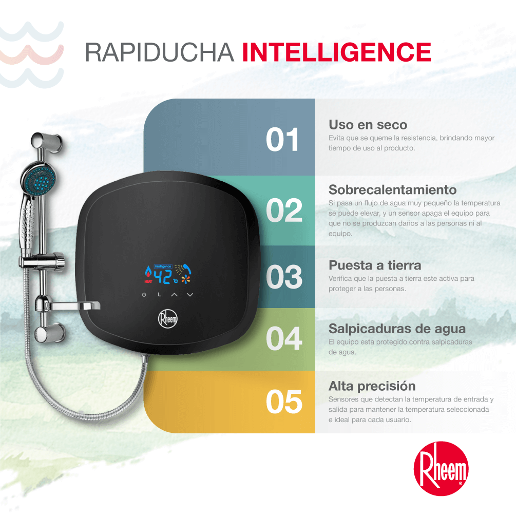 En primer lugar, ¿Qué es una rapiducha? y ¿Por qué elegir la Intelligence de Rheem? Una rapiducha es un calentador instantáneo. Utilizada en caso tengas un solo punto de agua fría en tu hogar.