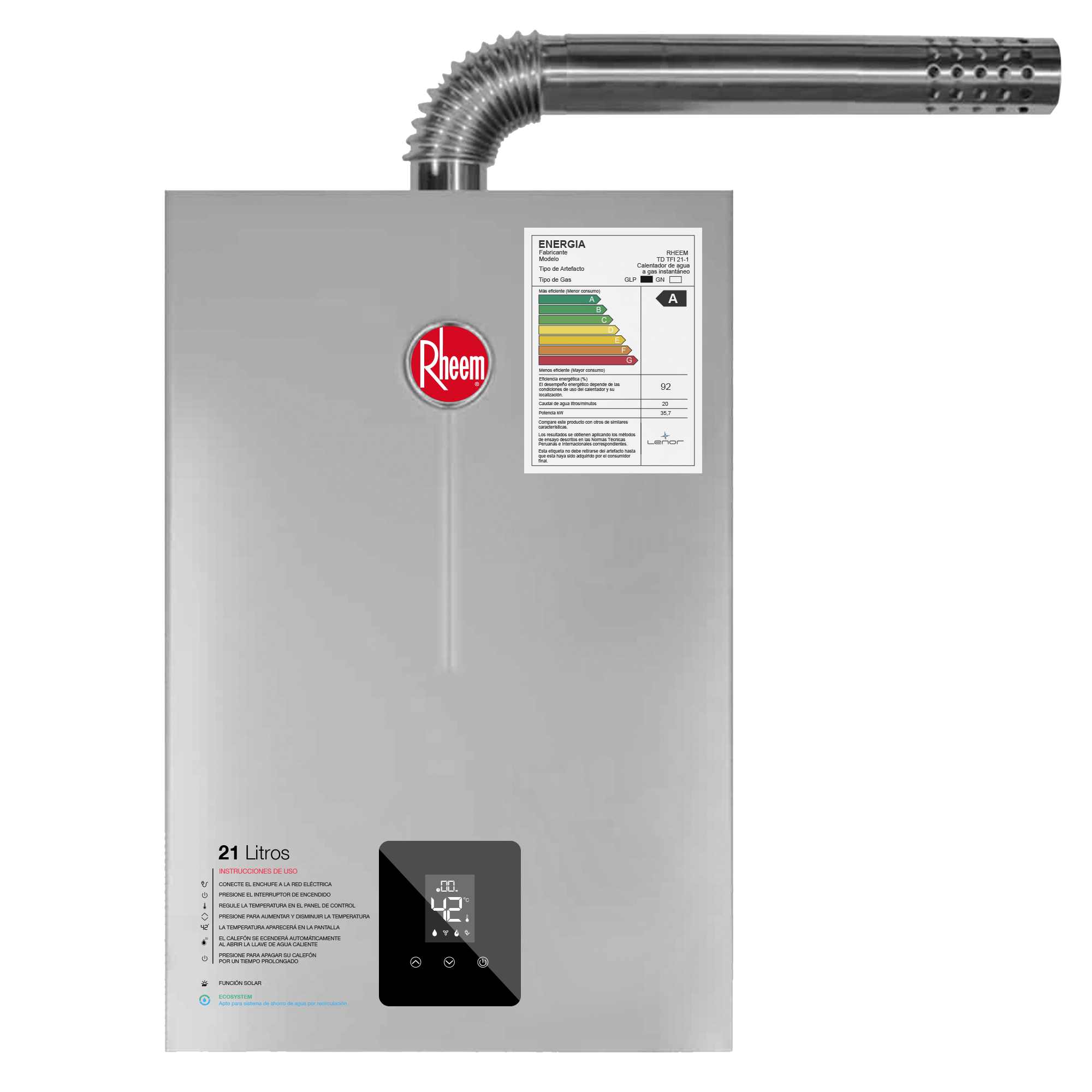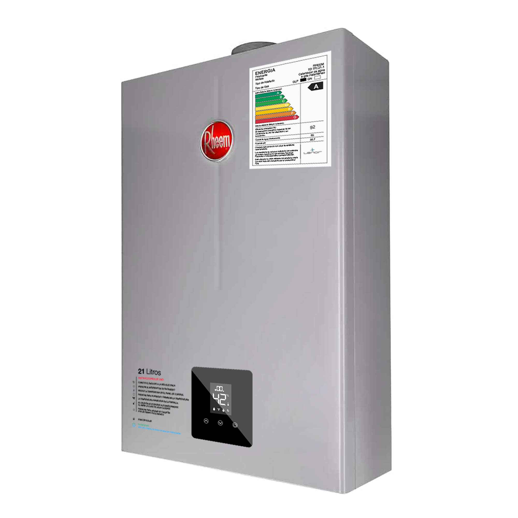 ¿Buscas capacidad en tu terma? Esta terma a gas GN de 21 litros tiene una pantalla digital que te permite elegir la temperatura exacta y monitorear el funcionamiento del producto. Además, se enciende de forma automática y con baja presión de agua.